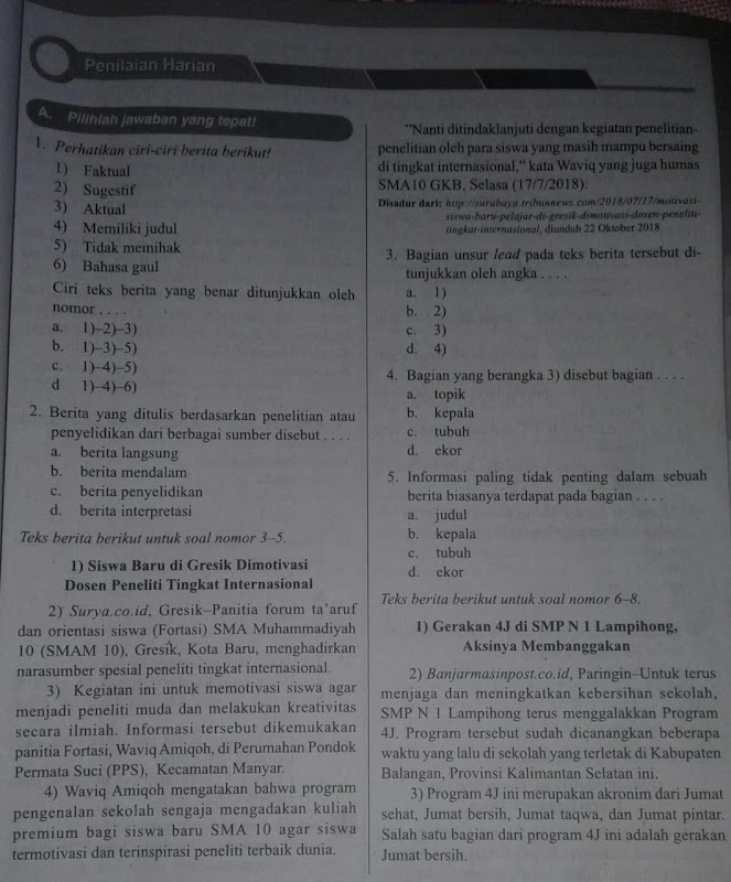 Kerjakan di buku latihan khusus Bahasa Indonesia, tulis biodata nama dan kelas. Langsung jawab, tulis pilihan dan kalimat pilihannya. Kemudian hasil kerja kalian foto dan segera kirim via WA ke nomor 081348372183